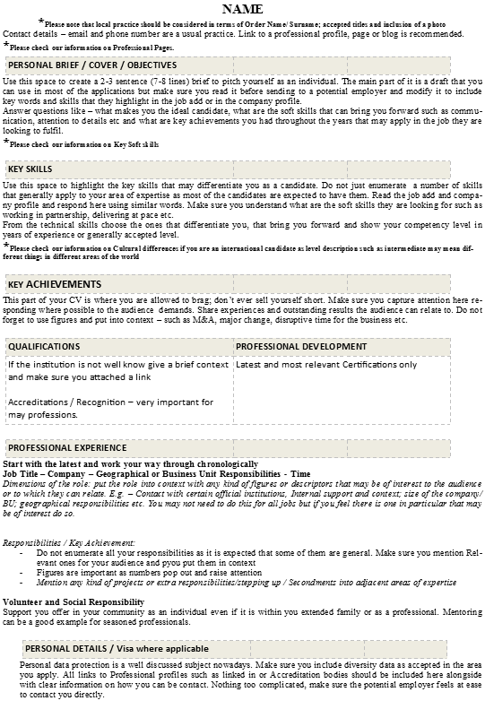 5. Professional experience - everything counts so make sure you highlight what is important. A long list of regular activities is not what people expect. In this section you need to let the best of you slip out.